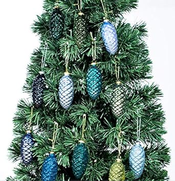 Essenceliving Glass Christmas Decorations Set Of 12 Hanging Pine Cone Painted Glass Ornaments For Christmas Tree Decor Colour Scheme 3